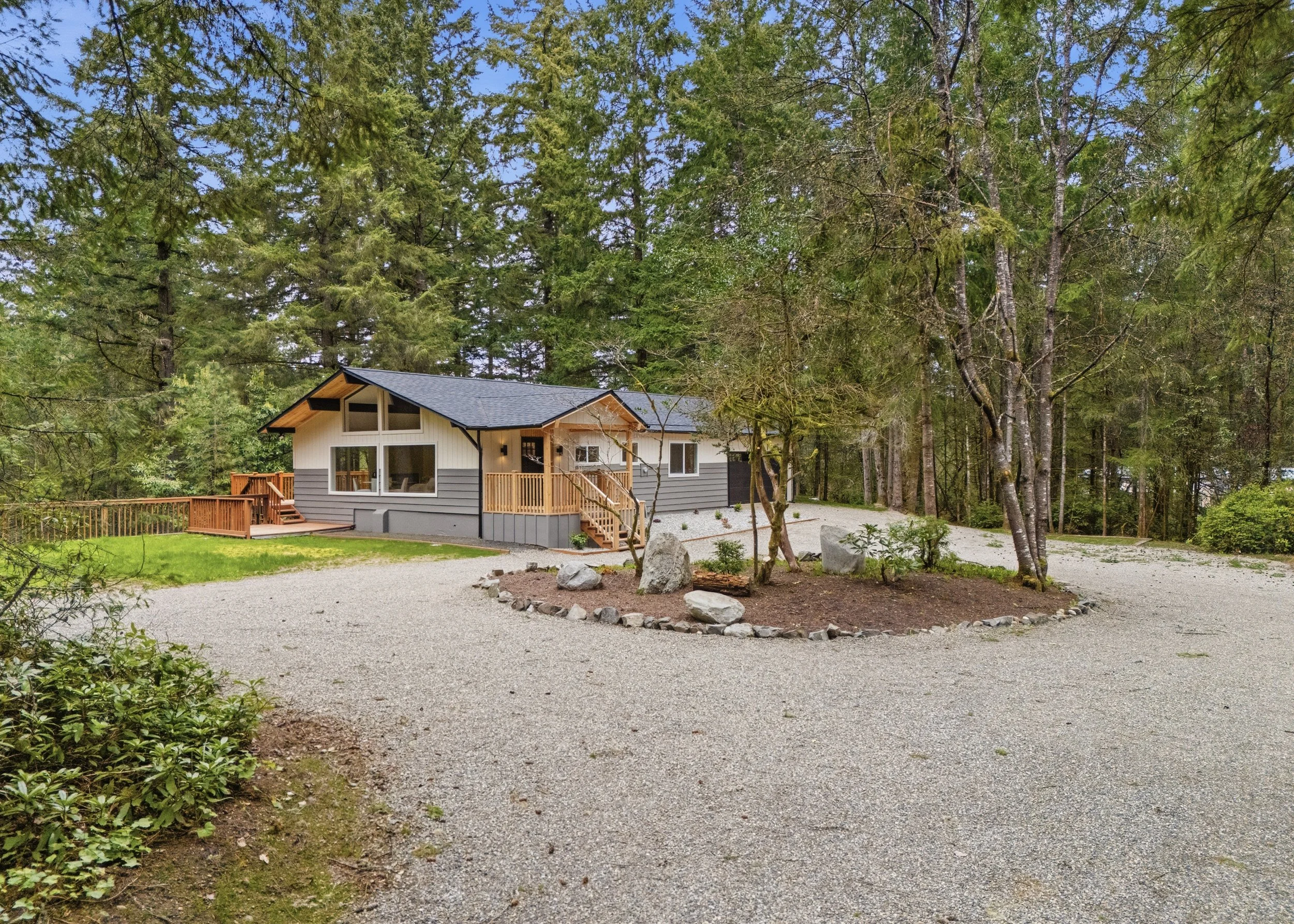 The original structure dates to 1976, but the home has been fully reimagined in recent years. You’ll find the interior stripped and rebuilt with contemporary finishes: a showstopping kitchen featuring quartz counters, a large island, and custom cabinetry. Vaulted ceilings and updated layout increase usable space and natural light.