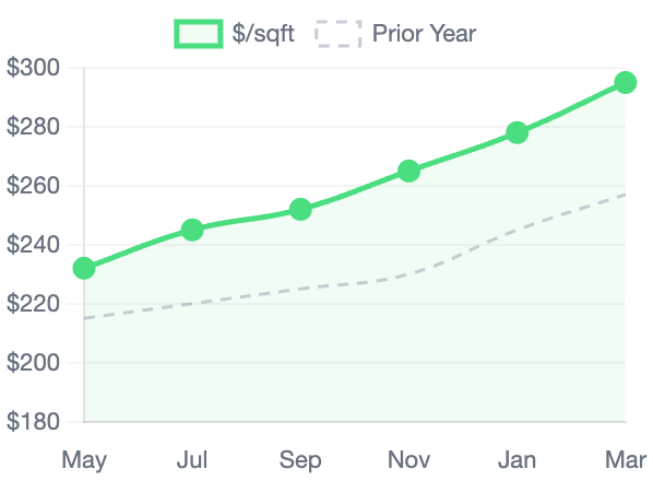 Price per sq ft as of April 2026
