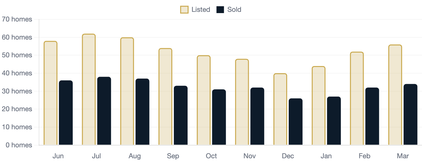 Homes Sold vs Listed Monthly (2025-2026)