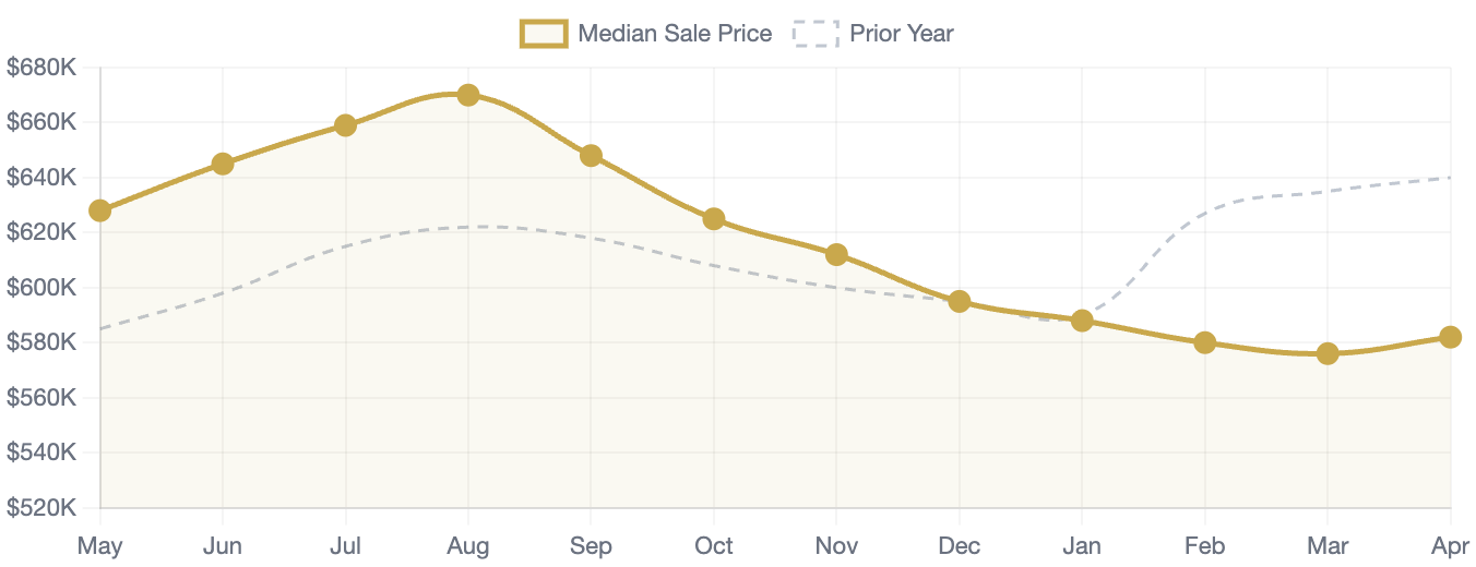 Metric Number Change Median Sale Price$580,000↓ 7.5% year-over-yearAverage Days on Market66 days↑ from 48 days last yearAvg. Offers Per Home2 offers. Somewhat competitive Price Per Square Foot $295↑ 14.6% year-over-year Sale-to-List Price Ratio~99% Homes selling near asking